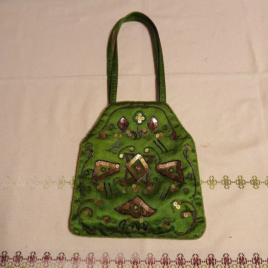 자수 장식 그린 핸드백