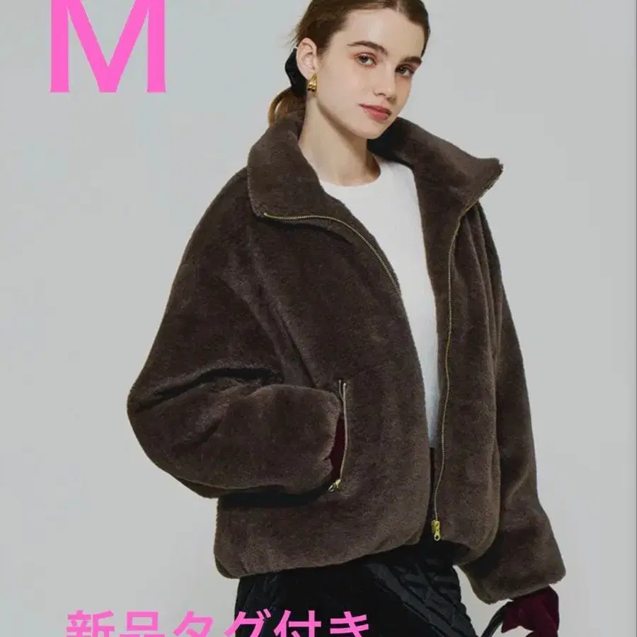 coca 인조 모피 스탠드 카라 블루종 브라운
