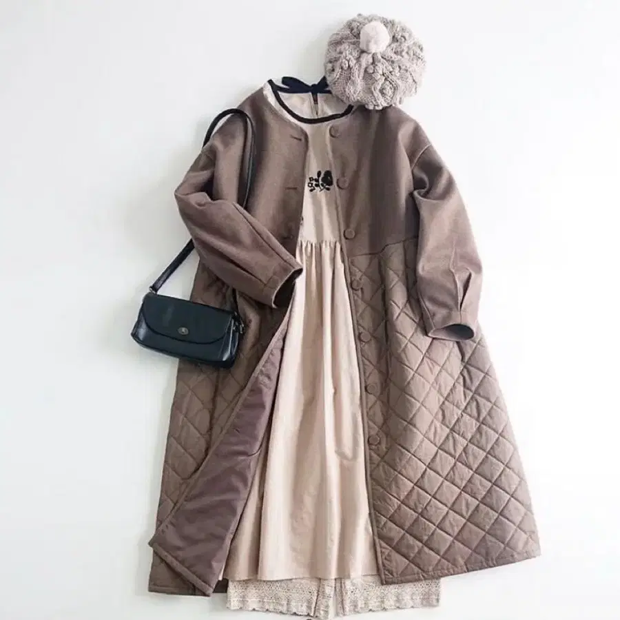 사만사 모스모스 새상품 퀼트 절개 코트 모카