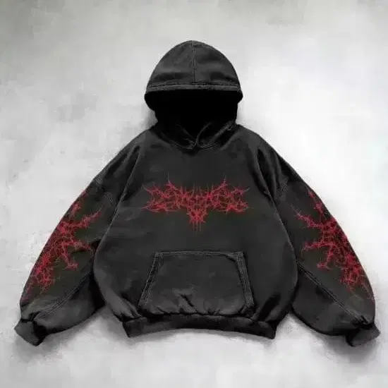 Y2K 블랙 후드 부착 후드티 빨간색 그래픽