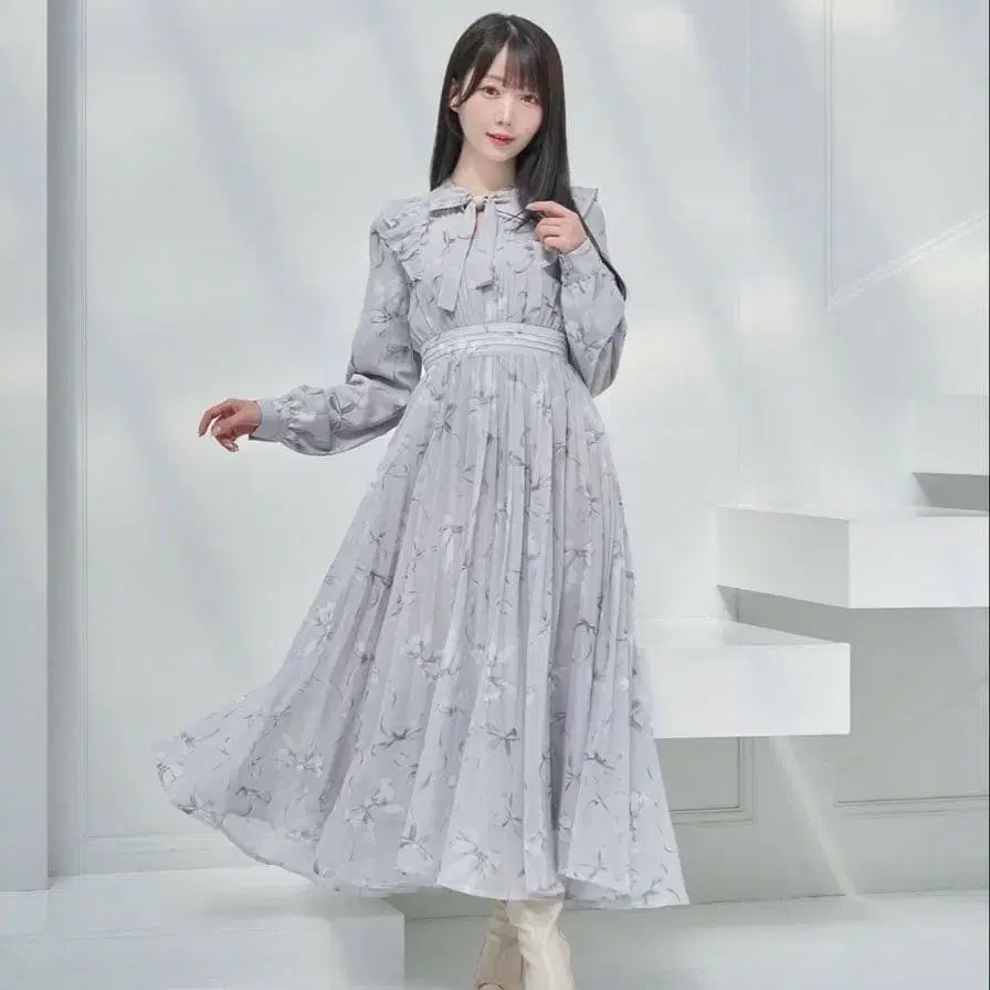 로제 뮤즈 원피스 ribbon pattern pleated dress