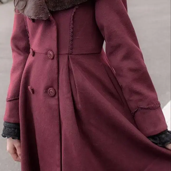 axes femme 퍼 롱 코트 더블 버튼 백 레이스업 리본