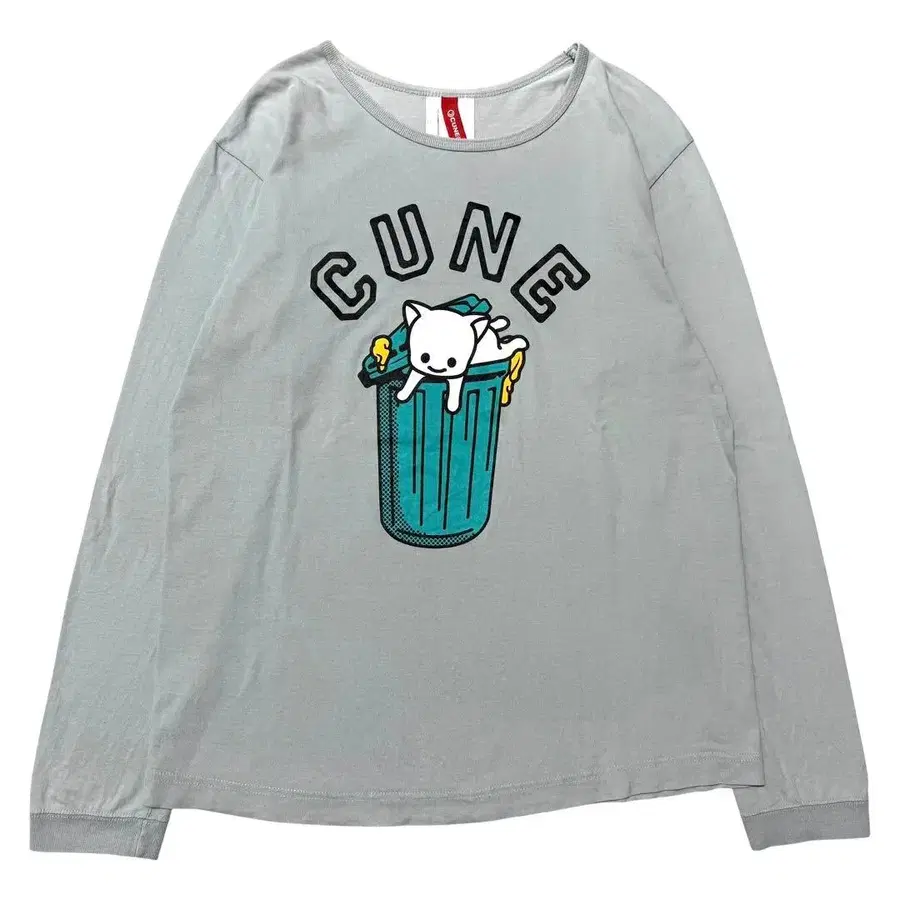 CUNE 버킷 고양이 로고 프린트 긴팔 컷소 롱티 L