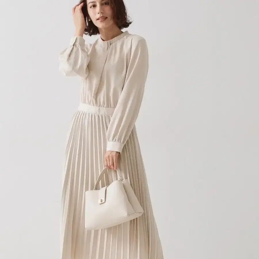 OPAQUE.CLIP 가벼운 조젯 소재로 완성한 고급스러운 플리츠 원피스 [ 디자인 ] 허리를 절개한 디자인으로 밸런스 있게 연출할 수 있는 아이템. 스커트 부분에 플리츠 디자인을 더해 화려한 인상을 줍니다. 프론트 디자인에 비대칭 턱을 넣어 고급스러운 화려함을 더했으며, 단품으로도 물론 자켓을 걸쳐도 멋스러운 디자인입니다. 업무나 외출은 물론, 자켓을 걸치면 입학식, 졸업식 등 세레모니 스타일에도 완벽합니다. 허리 뒷부분에는 밴딩을 넣어 핏감과 착용감 모두 좋습니다. 뒷지퍼를 열어 입고 벗는 디자인입니다. [ 소재 ] 가벼운 조젯 소재를 사용했습니다. 머신 워셔블로 가정에서 관리가 가능합니다. [ 사양 ] 포켓 없음 뒷지퍼 스커트 부분만 안감 있음 ※ 안감이 없는 부분은 약간의 비침이 있습니다. -------------- 신장 150cm일 때 사이즈감은 크게 이상하지 않았지만, 예쁘게 입을 수 있는 사이즈에 코다와리를 두고 싶어 인터넷 한정판으로 시착이 불가능한 S 사이즈를 다시 구매했기 때문에 이 상품은 판매합니다. 키가 5cm 더 컸다면 M 사이즈도 괜찮았을지도 모릅니다. 매장에서 한 번 시착만 했습니다. 집에 돌아온 후에는 한 번도 입지 않았습니다. 명찰은 달려 있습니다. 매장에서 네이비와 고민했지만 블랙처럼 보여 라이트 베이지로 선택했습니다. 라이트 베이지로 하길 잘했습니다. 정말 마음에 듭니다. 11,000엔에 구매했습니다.