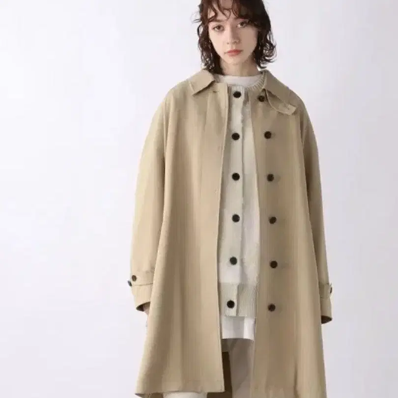 • 베이지 트렌치코트 블랙 버튼