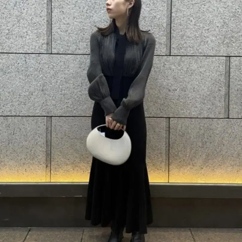 FRAY I.D 머메이드 니트 롱 원피스 긴팔 도트 블랙