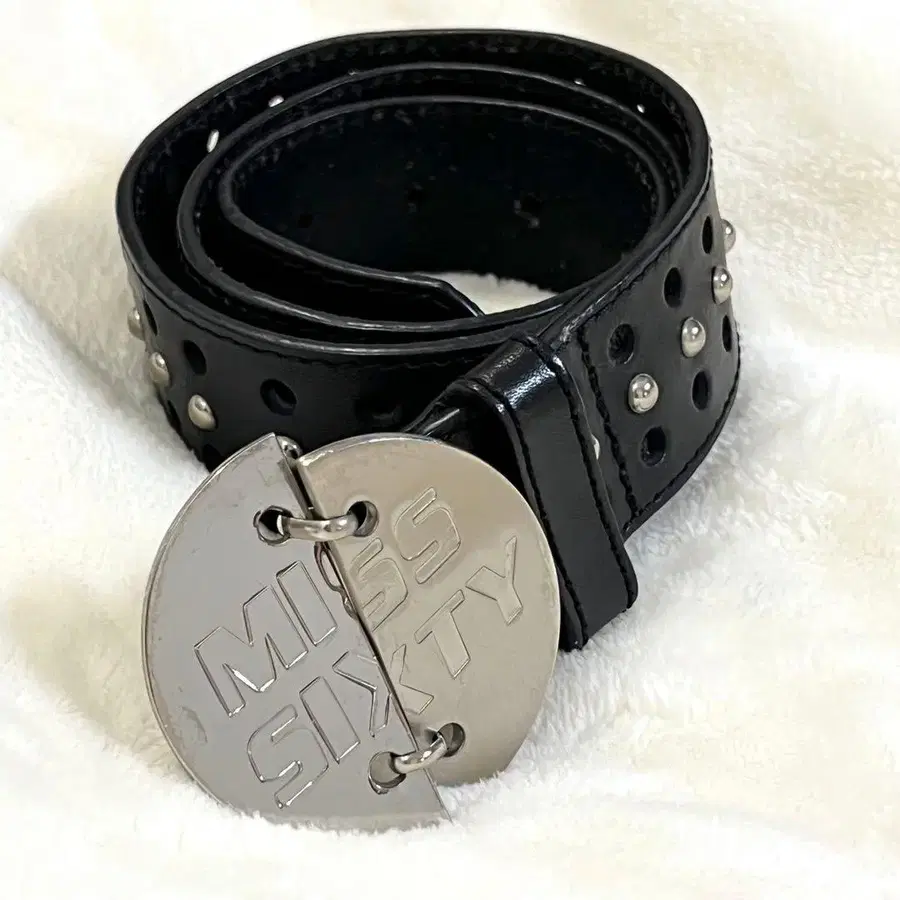 도트 스터드 디자인이 인상적인 가죽 벨트입니다.