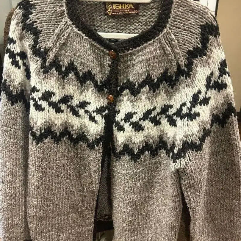 ISHMA 노르딕 무늬 가디건 울 100%