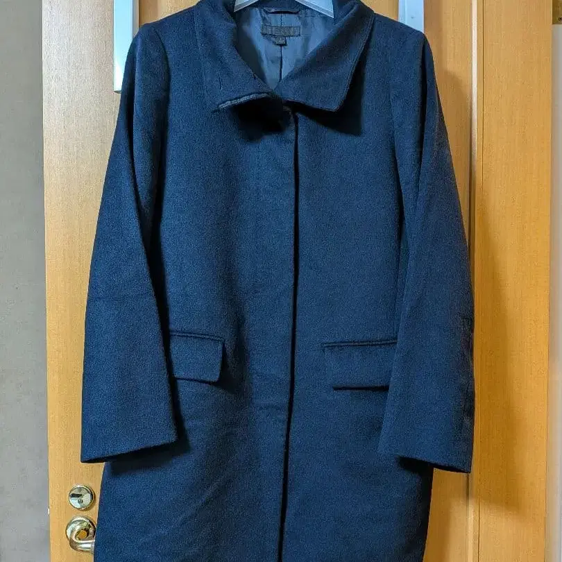 유니클로 여성용 네이비 롱 코트 스탠드 카라