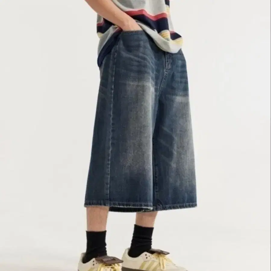 다크 블루 와이드 데님 숏팬츠