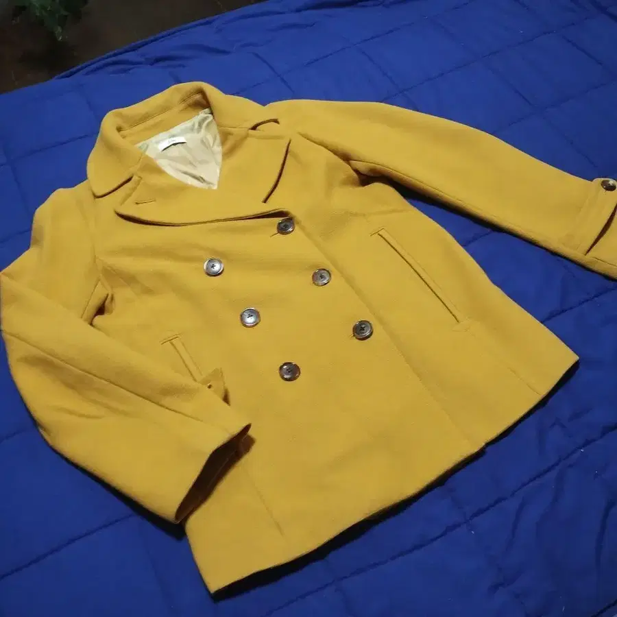IENA 머스타드 더블 브레스트 피 코트