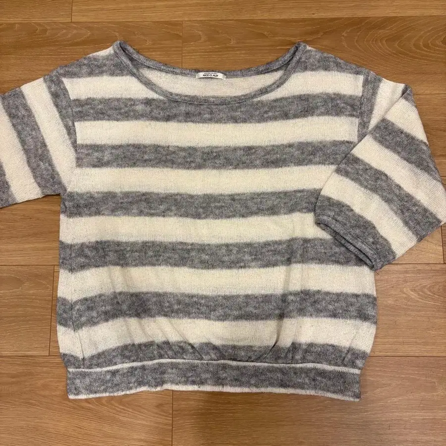 NICE CLAUP 보더 니트 풀오버 그레이 화이트 프리 사이즈