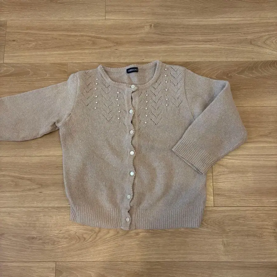 AMMODO 니트 가디건 펄 버튼 시스루 편직 베이지 M 상당