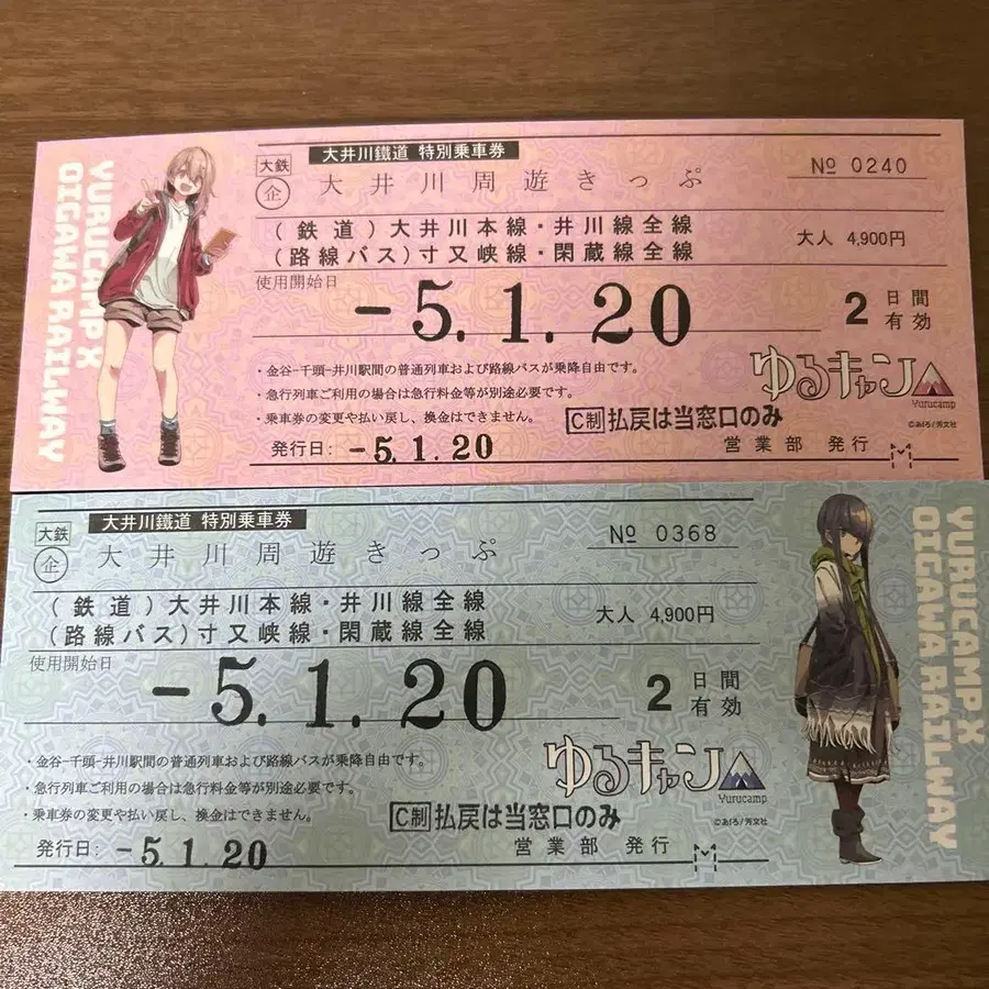 이전에 야후 옥션에서 구매한, ゆるキャン △ 콜라보의 오이가와 주유 티켓입니다. 카카미가하라 나데시코 ver와 시마 린 ver가 있습니다. 약간 부풀어 오른 부분이 있습니다.