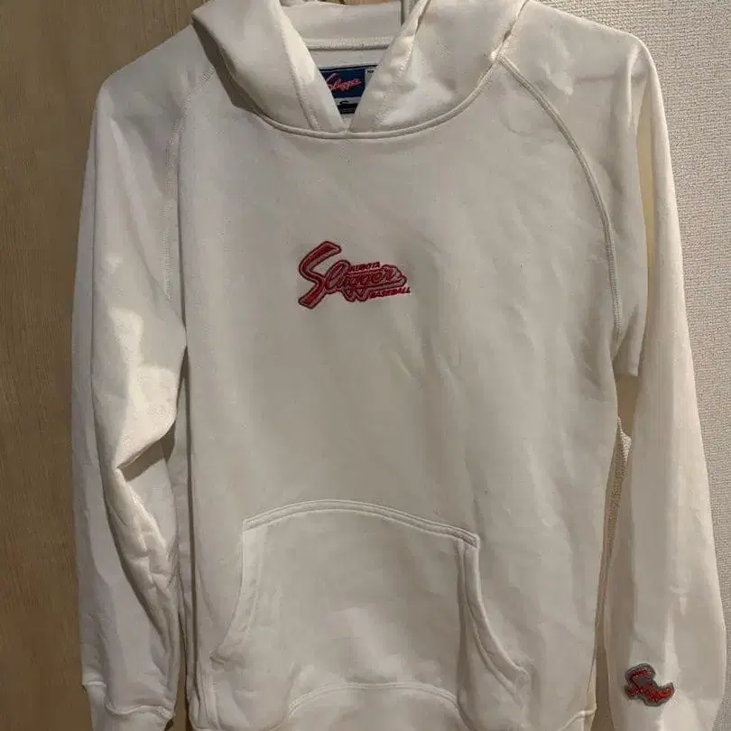 화이트 후드 부착 후드티 로고 자수