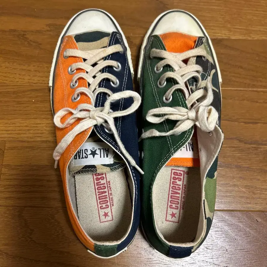 카모 패턴과 컬러 블록 디자인이 특징인 스니커즈. - 브랜드: CONVERSE - 모델: ALL STAR - 색상: 오렌지, 네이비, 카키 - 디자인: 카모 패턴 - 소재: 캔버스 방문해 주셔서 감사합니다.