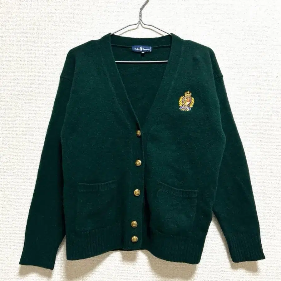 랄프 로렌 가디건 그린 골드 버튼 90's 엠블럼 M