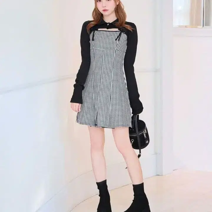 [ 최저가 ] 미셸 마카롱 깅엄 체크 원피스 세트