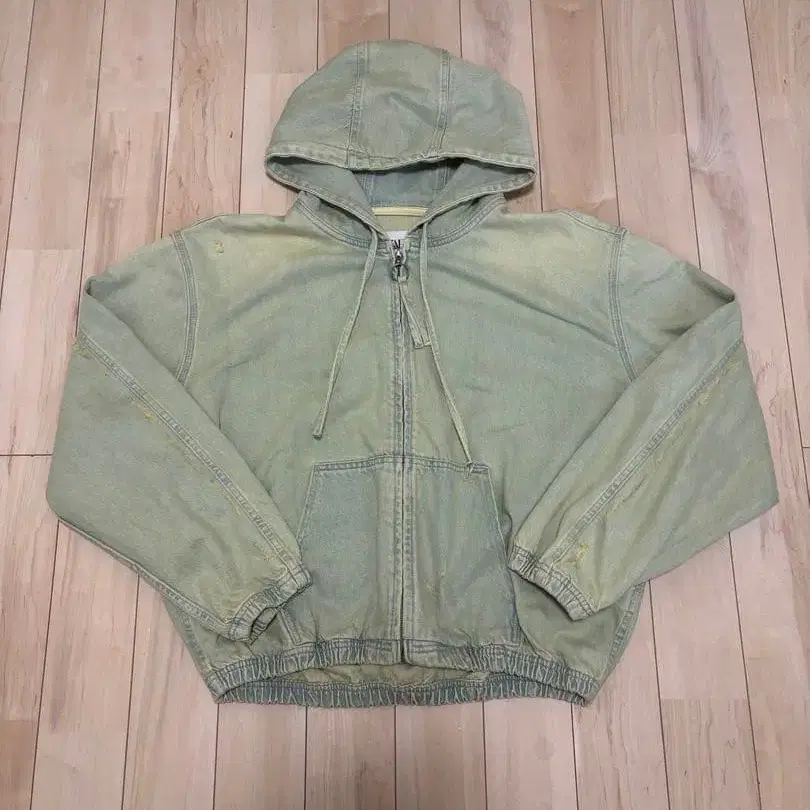 ZARA 옅은 그린 컬러 후드 부착 데미지 후드티