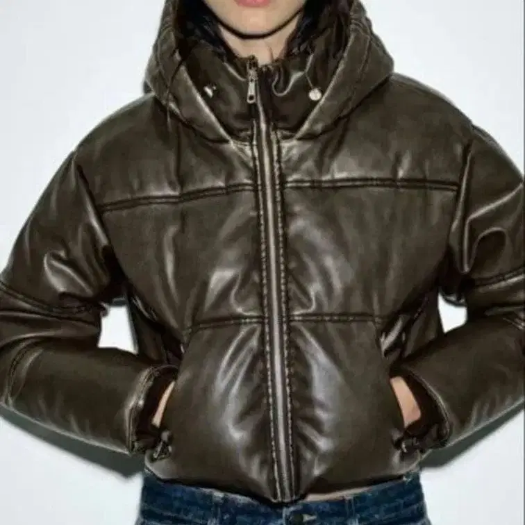 Zara 인조 가죽 숏 퍼프 베스트