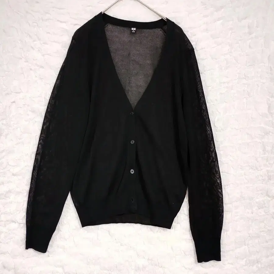 [UNIQLO] 비침이 있는 블랙 V넥 가디건 M 얇은 소재 오피스