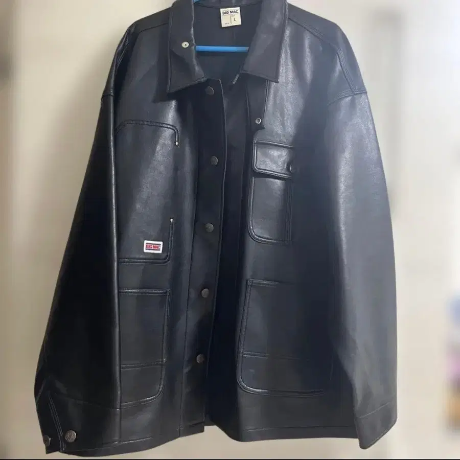 블랙 가죽 BIG MAC 자켓, 3개의 포켓 포함.