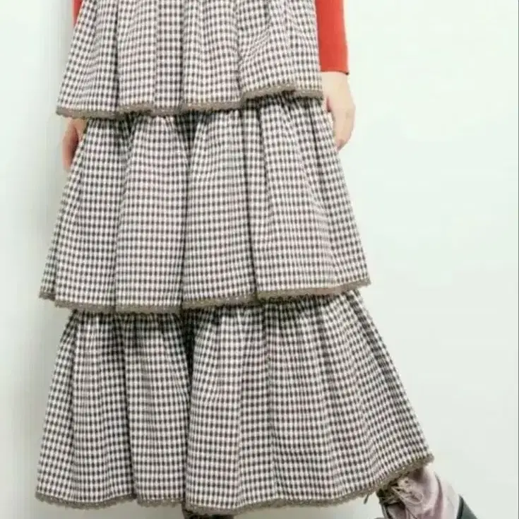 [ merry jenny ] CHIC-ish 깅엄 캉캉 스커트 브라운