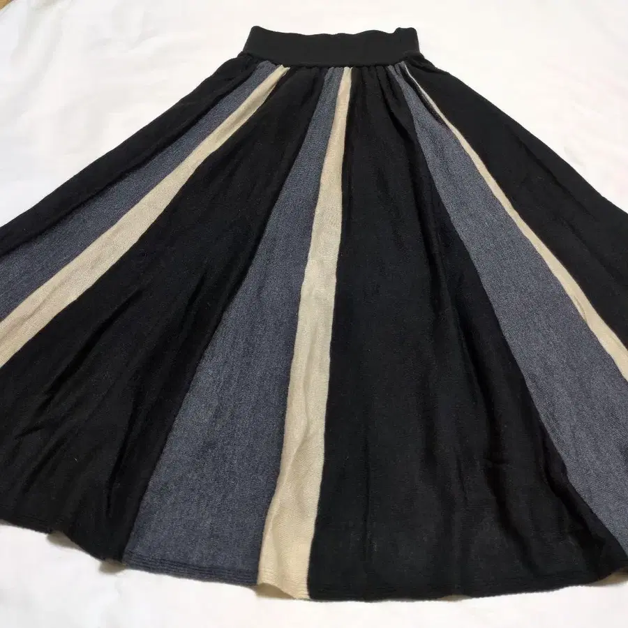 니트 플레어 롱 스커트 블랙 그레이 베이지 스트라이프 안감 있음