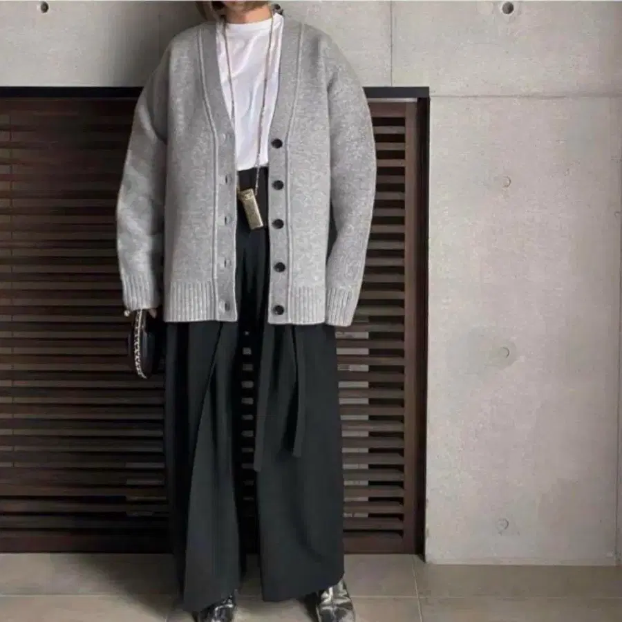LOHEN 로헨 더블 페이스 V넥 가디건 그레이