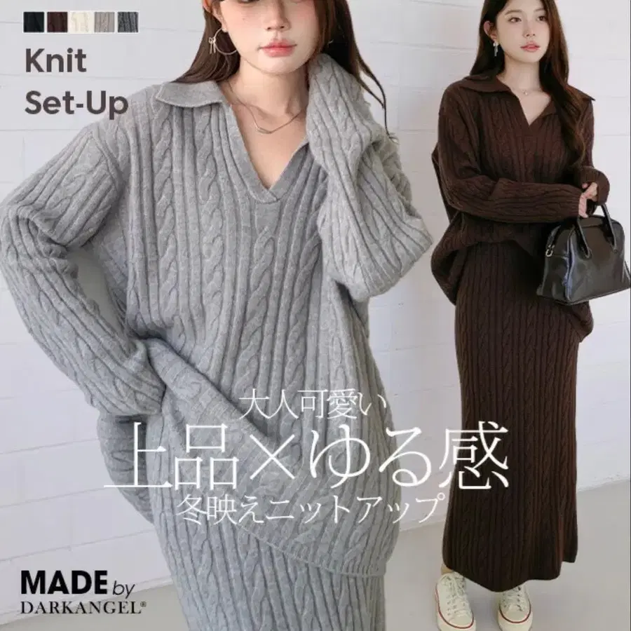 셋업 여성용 가을/겨울 깔끔한 카라 부착 V넥 니트업