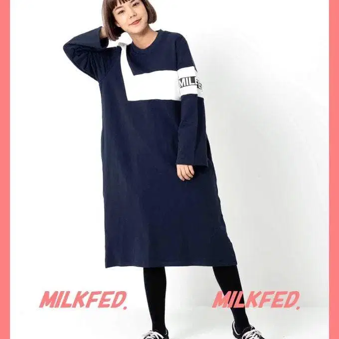 밀크페도 컨디션 최상 완판 배색 로고 A라인 롱 맨투맨 원피스 네이비