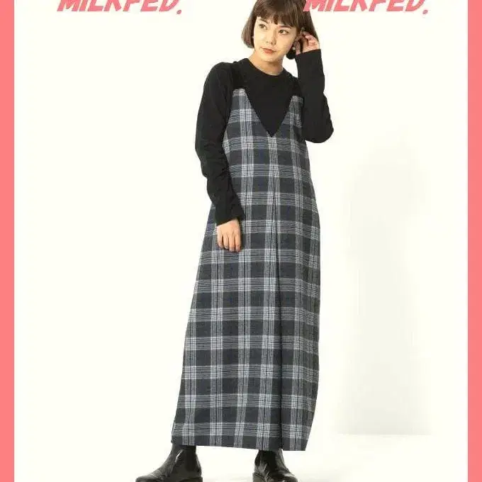 밀크페도 초미품 완판 벨로아 숄더 글렌체크 점프수트 원피스