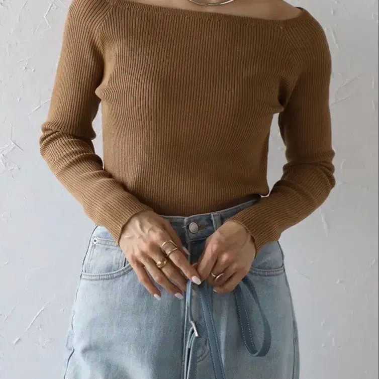 봉쥬르 사간 스퀘어넥 긴팔 리브 니트