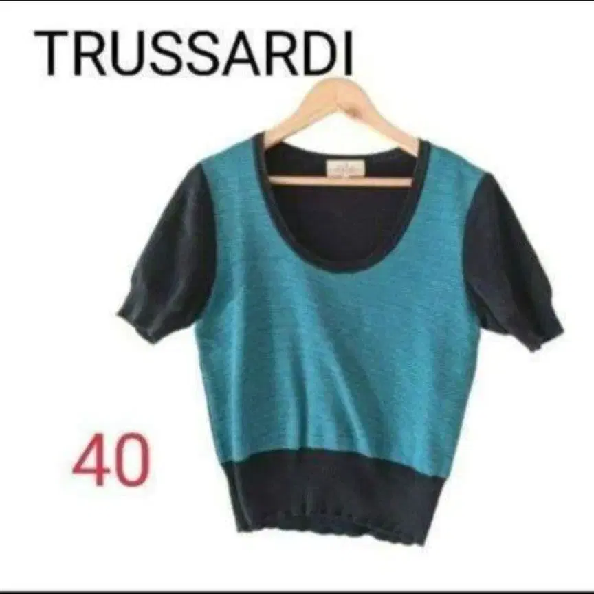 자동 번역되었어요. 원문보기[ 컨디션 최상 ] 트루사르디 바이컬러 반팔 니트 터콰이즈 그린 x 블랙 40