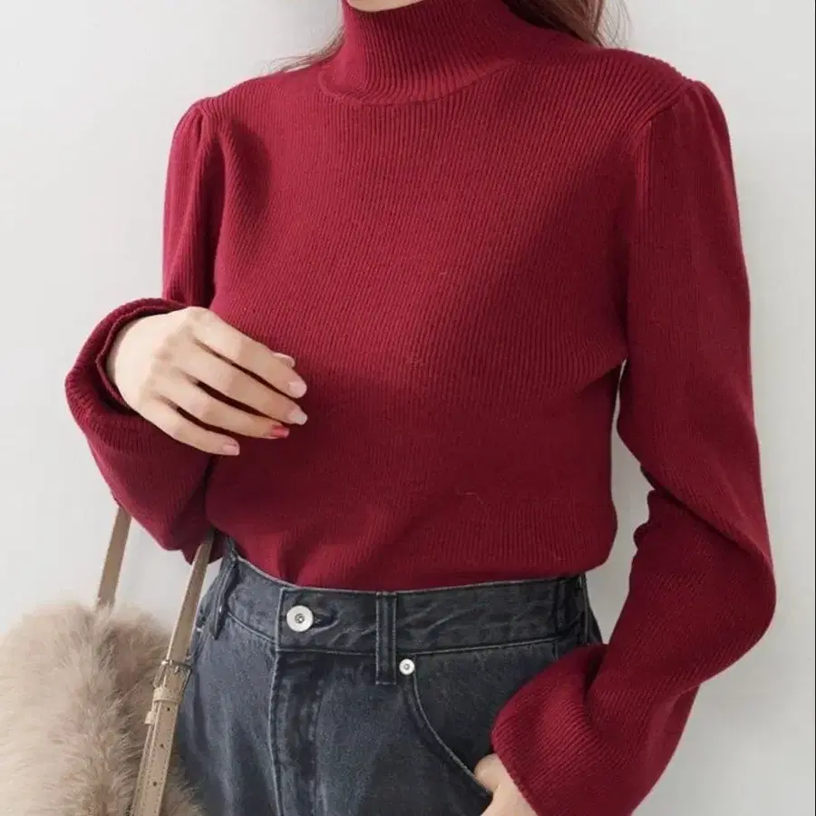 유연한 리브 짜임이 신체 라인에 적당히 핏되어, 예쁜 실루엣을 연출하는 하이넥 니트.