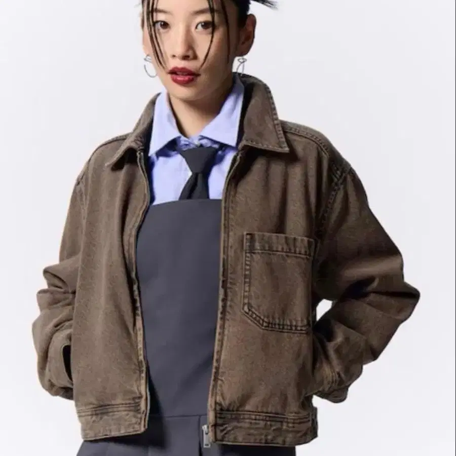 [ GU ] 데님 집업 블루종 브라운 M 사이즈