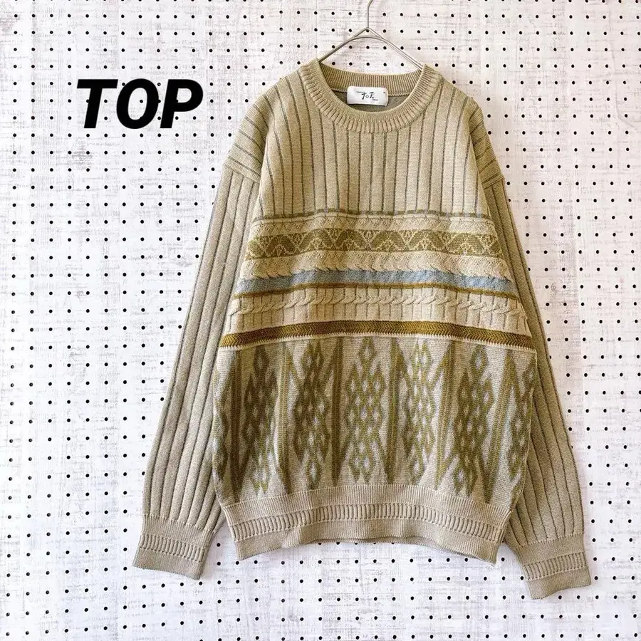 탑 자카드 니트 올 패턴 크루넥 베이지 계열 ( M ) 울 일본제