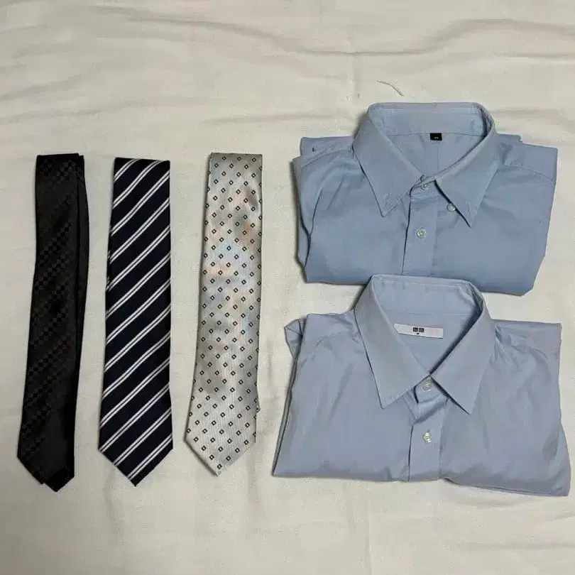 [새상품급] 블루 셔츠 2장과 넥타이 3개 묶음 세트