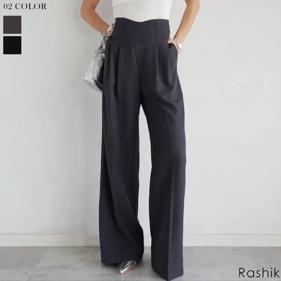 차콜 허리 디자인 스트레이트 팬츠 Rashik