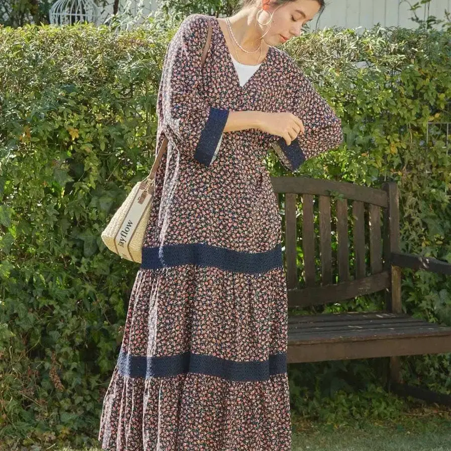 미사용 새상품 BAYFLOW 7부 소매 빈티지 플라워 원피스