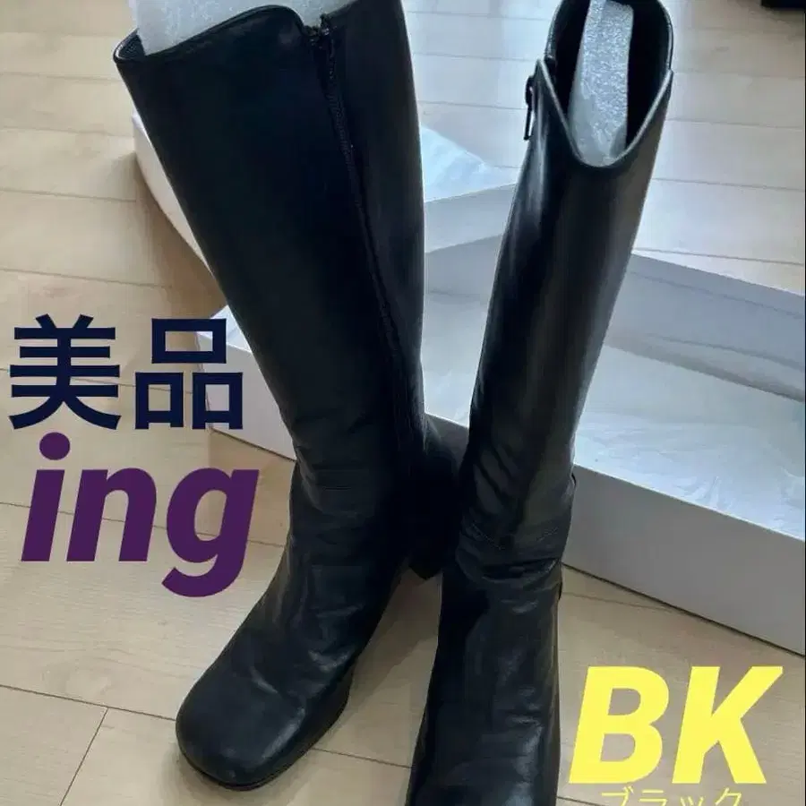 [새상품급] ing 잉그 롱 부츠 사이드 지퍼 BK 가죽 와이드 힐 24
