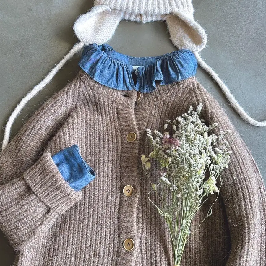 vintage market 구매*울 혼방 튜닉 기장 긴팔 니트 가디건