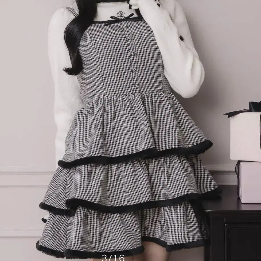 pium 퍼 포함 티어드 오버롤 스커트