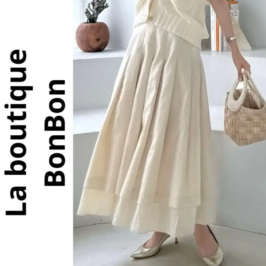 새상품 La boutique BonBon 시어 턱 스커트 롱 스커트