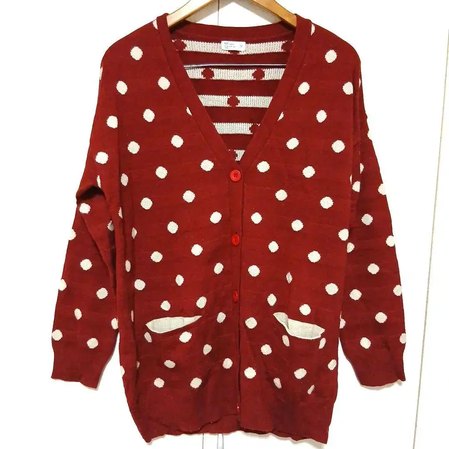 NET Ladies 빨간색 물방울 패턴 가디건 M