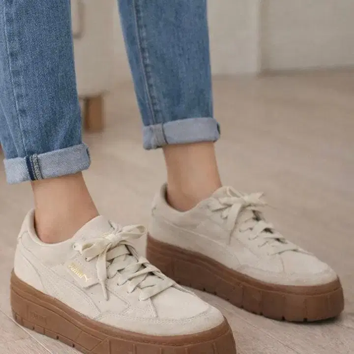 PUMA 통굽 스니커즈 스웨이드 아이보리 고무 밑창