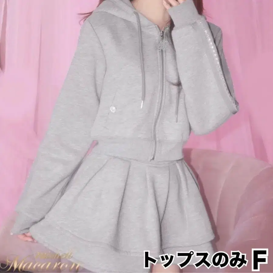 미셸 마카롱 프릴 스커트 셋업 그레이 상의만