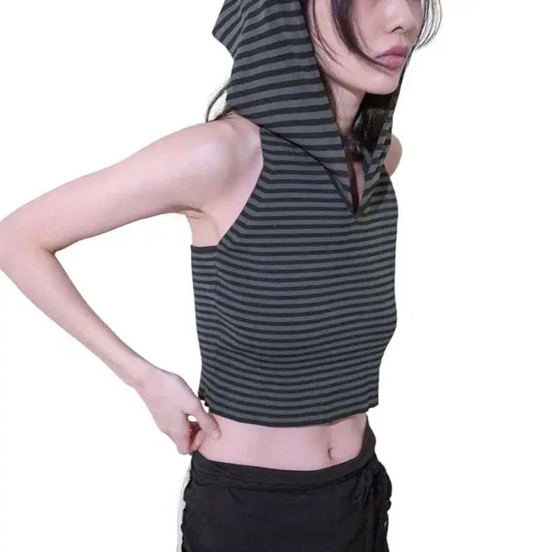 Cropped Hoodie Knit Top / Border