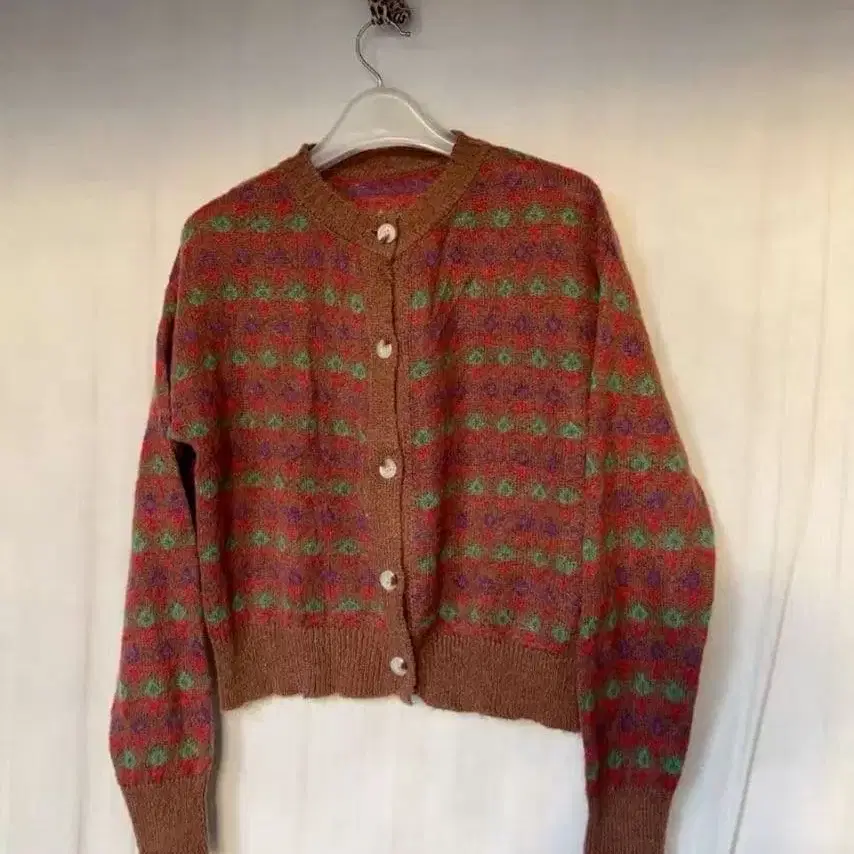 브라운 계열 무늬 긴팔 가디건