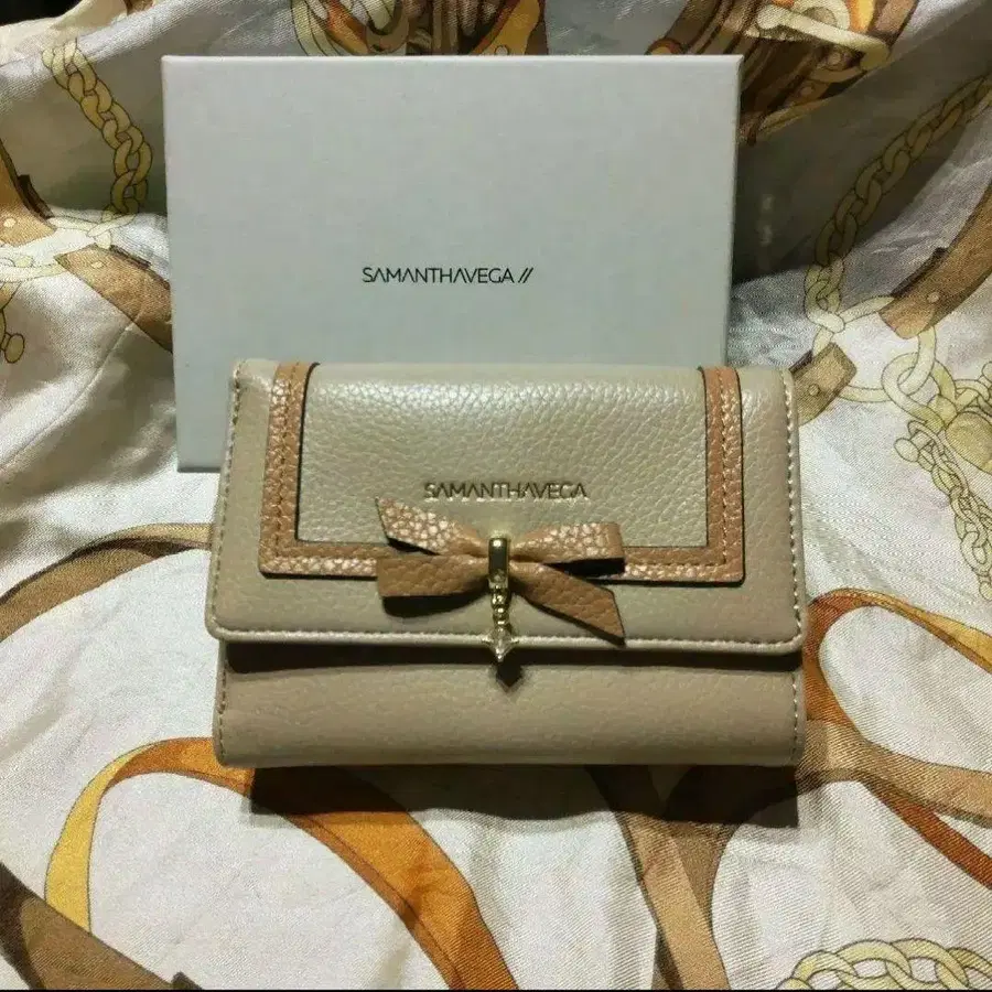 SAMANTHAVEGA 베이지 3단 폴더형 지갑 미사용 새상품